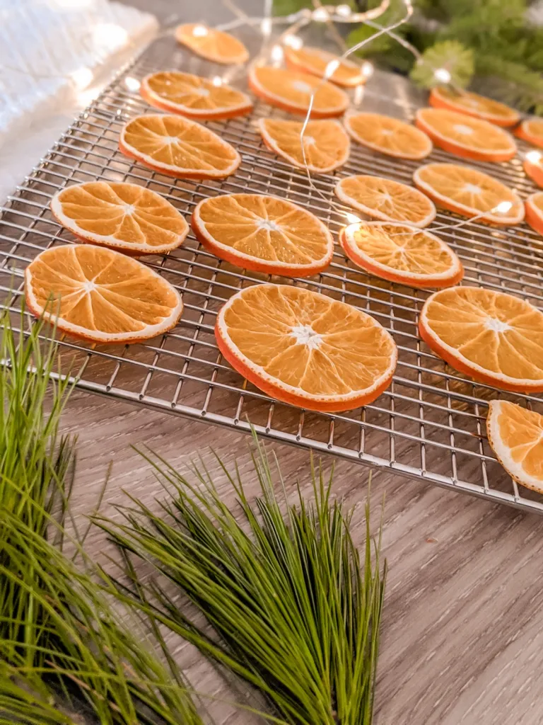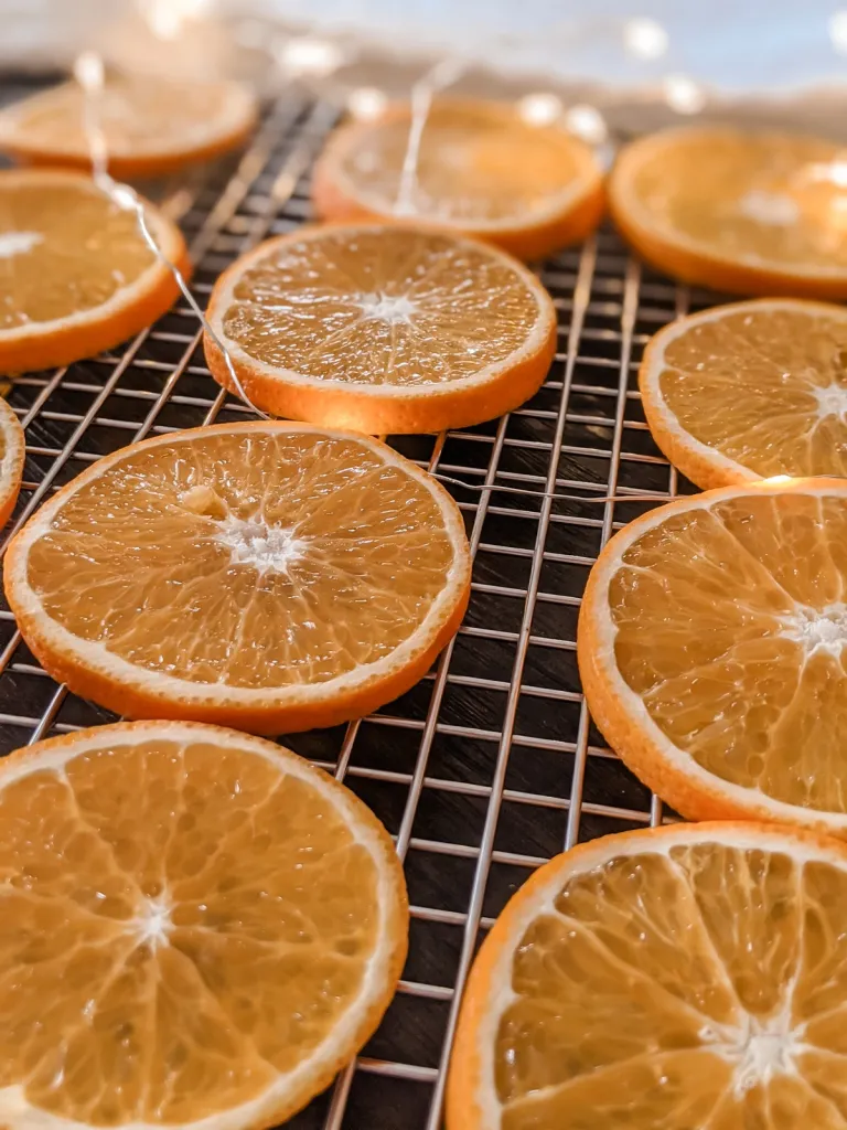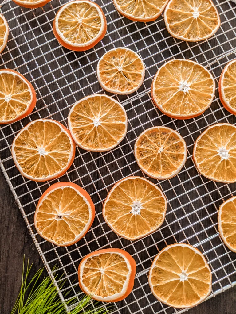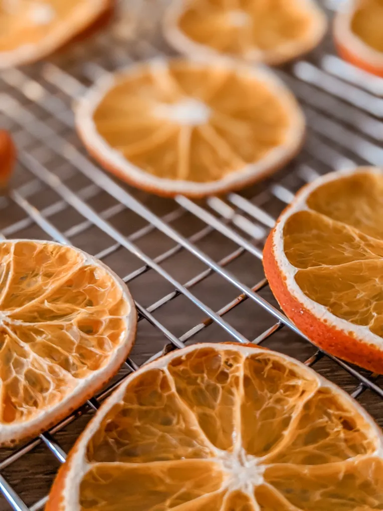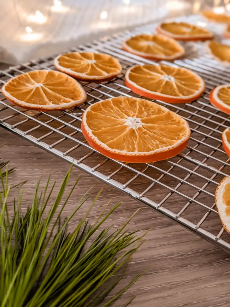 When done, the dried orange slices should feel firm and dry, with just a slight stickiness in the center. They’re perfect for decorating trees, wreaths, garlands, or gifts.